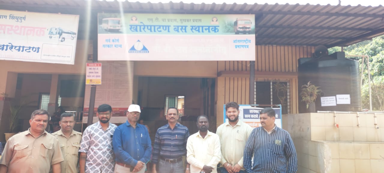 खारेपाटण एसटी बस स्थानक हे सिंधुदुर्ग व रत्नागिरी अशा दोन जिल्ह्यांना जोडणारे सिंधुदुर्ग जिल्ह्यातील प्रमुख एसटी बसस्थानक असून येथील परिसर स्वच्छ व सुंदर असून कर्मचारी वर्ग चांगली बस स्थानक सुंदर ठेवण्यासाठी चांगली मेहनत घेत आहेत. यांबद्दल स्वच्छ सुंदर बसस्थानक मूल्यांकन समिती सदस्य तथा सांगली जिल्हा रा.प. विभाग नियंत्रक प्रमुख सुनील भोकरे यांनी समाधान व्यक्त केले. यावेळी कणकवली स्थानक वाहतूक नियंत्रक प्रमुख श्रीनिवास कदम व खारेपाटण एसटी बस स्थानक वाहतूक नियंत्रक प्रमुख कणकवली एसटी डेपो सहायक कार्यशाळा अधिकारी अनिश रेडीज, खारेपाटण एसटी बस स्थानक वाहतूक नियंत्रण प्रमुख प्रवीण कर्पे यांनी हिंदुहृदय सम्राट बाळासाहेब ठाकरे स्वच्छ सुंदर बसस्थानक मूल्यांकन समितीचे खारेपाटण एसटी बसस्थानकात स्वागत केले.