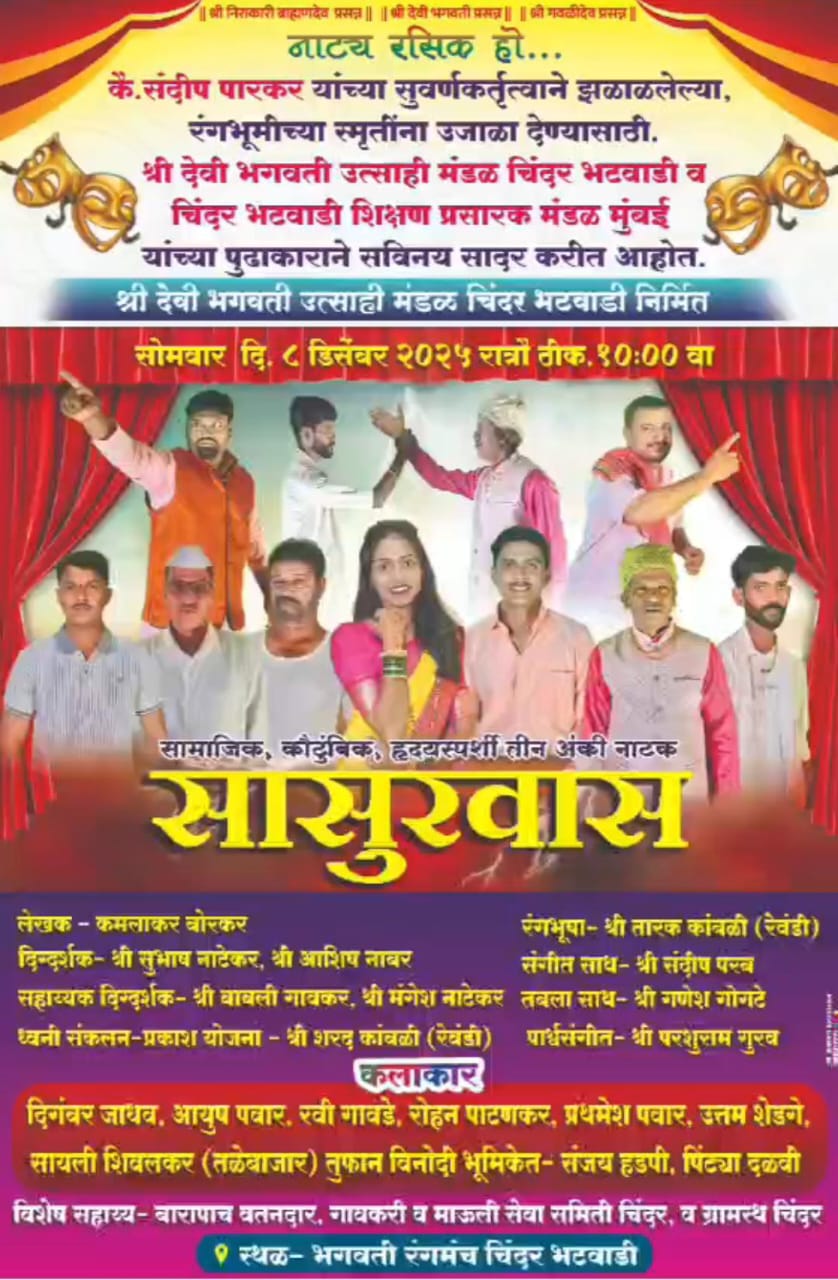 वेंगुर्ला (प्रतिनिधी) : नगर वाचनालय, वेंगुर्ला संस्थेतर्फे रविवार दि. 28 डिसेंबर रोजी दुपारी 3.30 वाजता संस्थेच्या कोरगांवकर सभागृहात स्व. भालचंद्र शंकरराव कर्पे स्मृती गायन स्पर्धा आयोजित करण्यात आली आहे. ही स्पर्धा वेंगुर्ला तालुका मर्यादित आहे. दोन गटात संपन्न होणा-या या स्पर्धेसाठी 5वी ते 7 वीसाठी गीतगायन तर 8वी ते 10 वीसाठी नाट-गीत गायन विषय ठेवण्यात आले आहेत. दोन्ही गटातील प्रथम पाच विजेत्यांना 250, 200, 150 आणि 100ची दोन बक्षिसे देण्यात येतील. स्पर्धकांनी आपली नावे 23 डिसेंबरपर्यंत कार्यालयीन वेळेत मुख्याध्यापक, पालक किंवा विद्यार्थ्यांनी संस्था कार्यालयात पाठवावीत. अधिक माहितीसाठी 8275667090 यावर संपर्क साधावा, असे आवाहन कार्याध्यक्ष अनिल सौदागर व कार्यवाह कैवल्य पवार यांनी केले आहे.