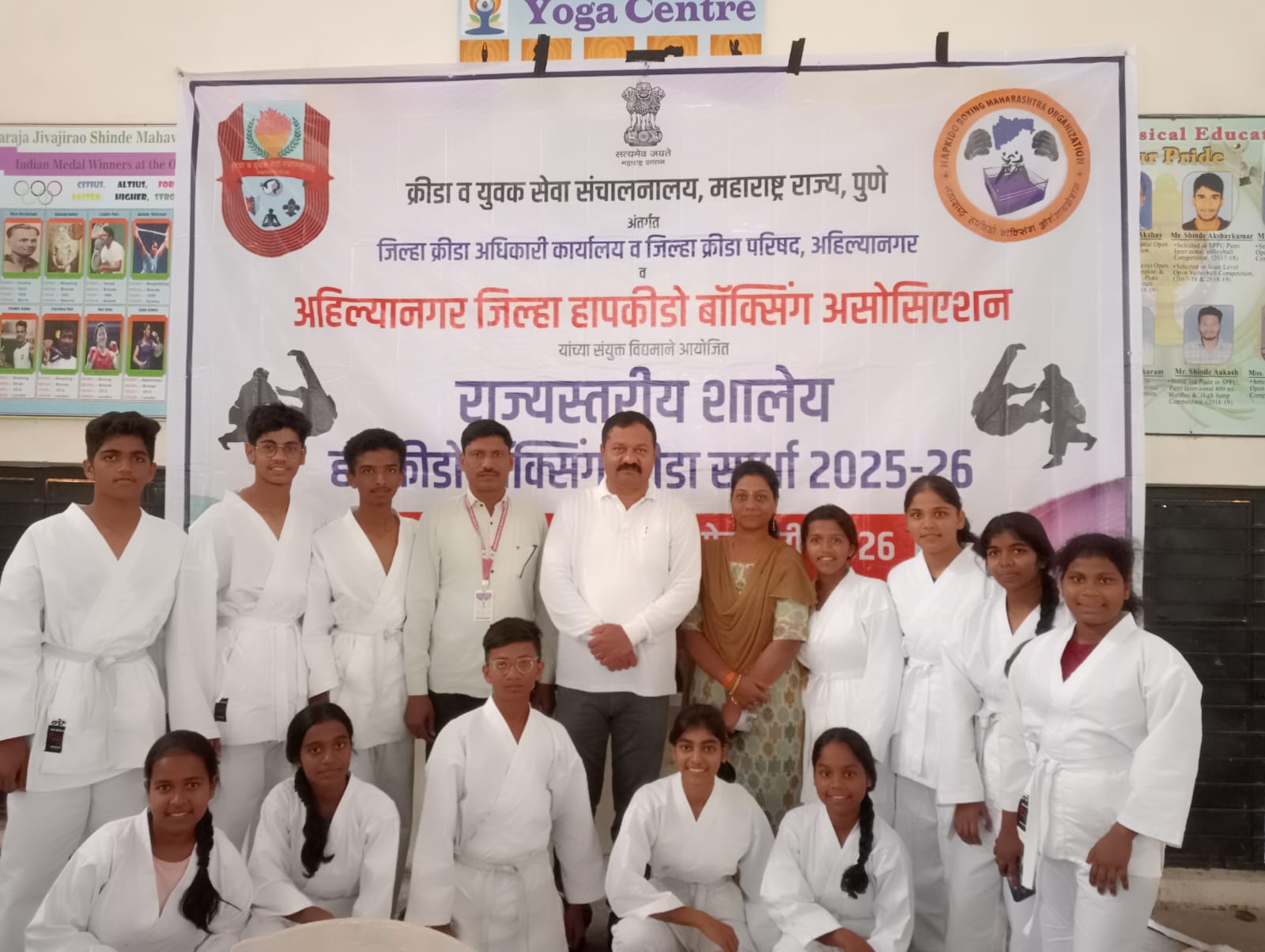 खारेपाटण (प्रतिनिधी) : क्रीडा व युवक सेवा संचालनालय महाराष्ट्र राज्य पुणे अंतर्गत जिल्हा क्रीडा अधिकारी कार्यालय व जिल्हा क्रीडा परिषद अहिल्यानगर व अहिल्यानगर जिल्हा हापकिडो बॉक्सिंग असोसिएशन यांच्या संयुक्त विद्यमाने आयोजित करण्यात आलेल्या राज्यस्तरीय शालेय हापकिडो बॉक्सिंग स्पर्धेत खारेपाटण हायस्कूलच्या १२ विद्यार्थ्यांनी सुयश प्राप्त केले.तर याच हायस्कूलची विद्यार्थ्यांनी कु. अनुष्का ज्ञानेश्वर गाडे हिने या स्पर्धेत गोल्ड मेडल मिळविल्याने तिची राष्ट्रीय स्तरावर निवड झाली आहे.