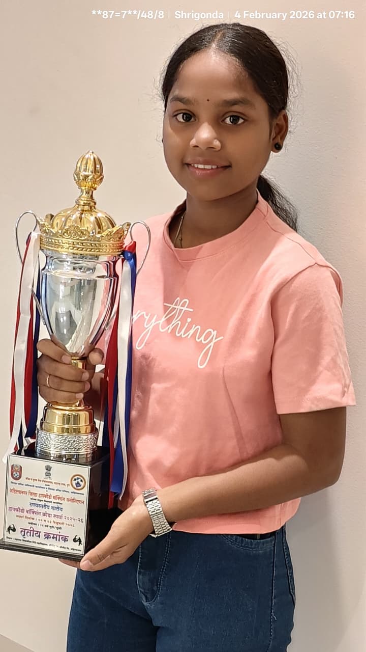 ७) कु.त्रिवेणी विशाल परब (तृतीय क्रमांक – ३९ किलो वजन गट)