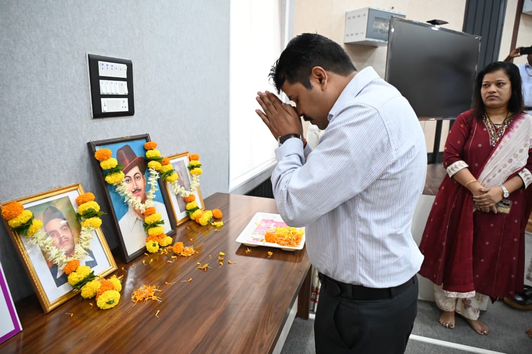सिंधुदुर्ग (प्रतिनिधी) : शहीद दिनानिमित्त जिल्हाधिकारी तृप्ती धोडमिसे यांनी जिल्हाधिकारी कार्यालयात शहीद भगतसिंग, राजगुरू आणि सुखदेव यांच्या प्रतिमेला पुष्पहार अर्पण करून अभिवादन केले.