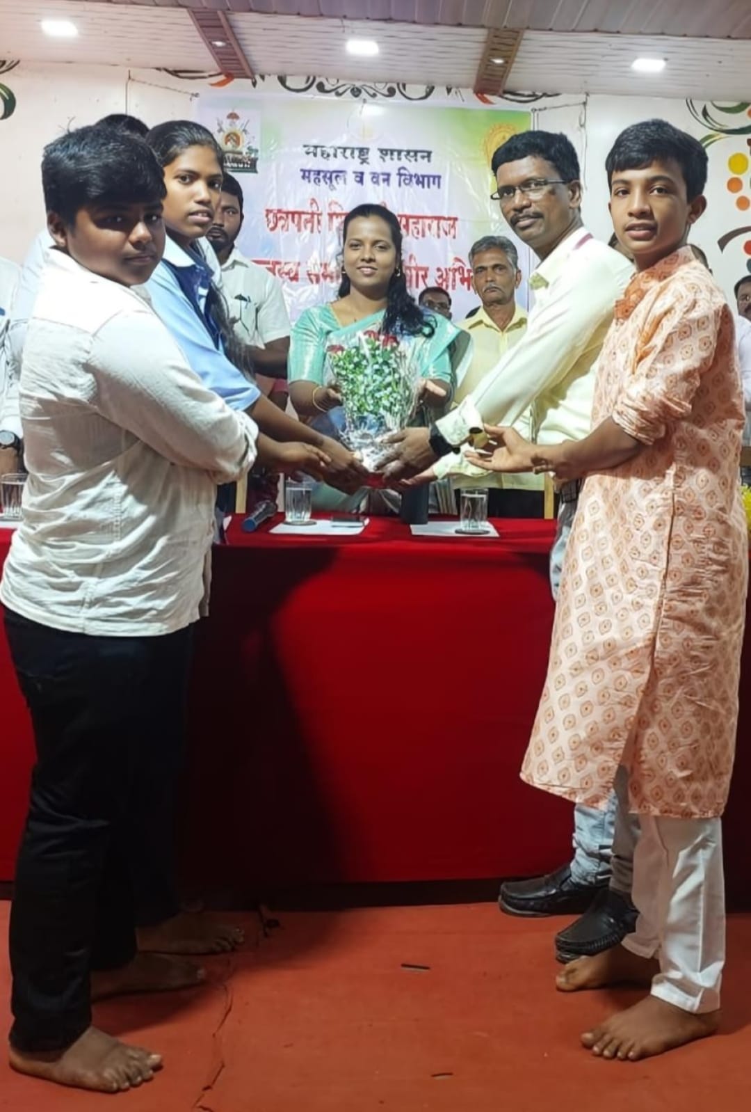 यावेळी जिल्हाधिकारी धोंडमीसे यांच्या शुभहस्ते गुणवंत विद्यार्थी व मार्गदर्शक शिक्षकाचा विशेष सत्कार करण्यात आला. या अभुतपुर्व यशाबद्दल मार्गदर्शक संगीतशिक्षक संदिप पेंडुरकर सर व राष्ट्रीय सुवर्णपदक विजेते विद्यार्थी आयुष प्रशांत मांगले, आर्या अनिल मोसमकर, सुमित रवींद्र ठोसर व वंश मारुती कानडे यांचा तृप्ती धोंडमिसे यांच्या शुभहस्ते विशेष सत्कार व सन्मान करण्यात आला. सिंधुदुर्ग जिल्हा हा कलाकारांची खाण आहे. अनेक बाल संगीत रत्ने या भूमीमध्ये आहेत. त्यांना शोधून त्यांच्यातील कला गुणांना वाव देण्याचे काम, त्यांच्या कलेला पैलू पाडण्याचे महत्त्वपूर्ण व अवघड काम संदिप पेंडुरकर सर करत आहेत. त्यांचे खुप मोठे योगदान या यशामध्ये आहे, असे गौरवपूर्ण उद्गार छत्रपती शिवाजी महाराज महाराज महाराजस्व समाधान शिबीराच्या उद्घाटन प्रसंगी खारेपाटण येथे काढले.